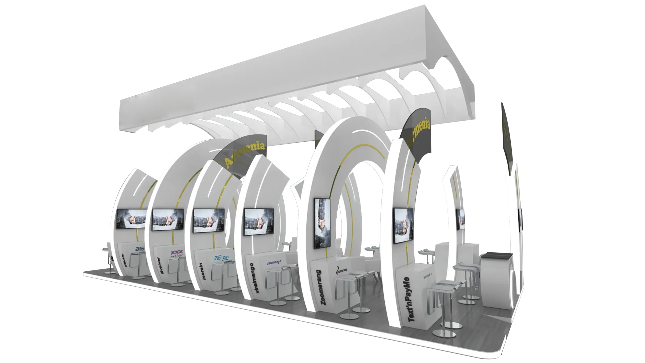 The Country Pavilions are created by incorporating simple volumes of 3D letters with unique, modern, dynamic information. This type of stand can infuse visitors with confidence about the specific country and exhibitors.